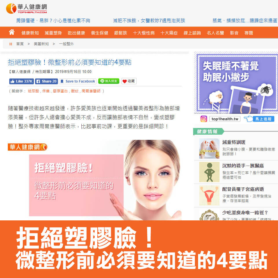 隨著醫療技術越來越發達,許多愛美族也逐漸開始透過醫美微整形為臉部增添美麗,但許多人總會擔心愛美不成,反而讓臉部表情不自然,變成塑膠臉!整外專家周爾康醫師表示,比起事前功課,更重要的是詳細問診!