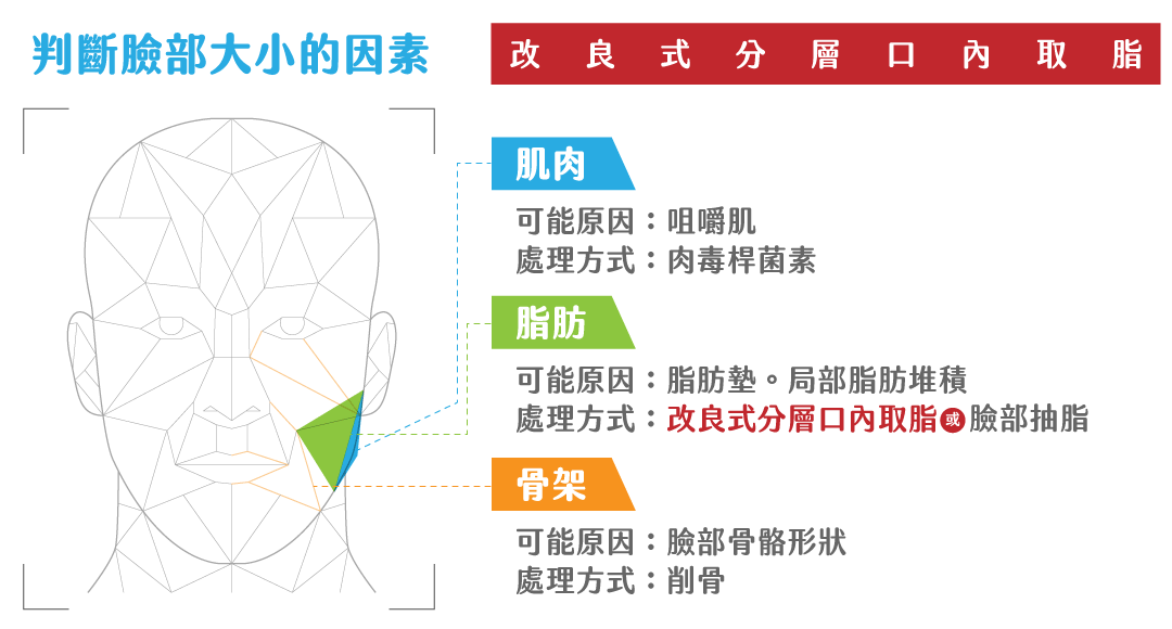 嬰兒肥是脂肪,長大後嬰兒肥也不會消。如果先天的口內深層脂肪墊過大,除了會讓臉部輪廓線條不夠立體之外, 嬰兒肥隨著年紀增長與地心引力的影響 ,也可能會造成口內脂肪墊的筋膜鬆弛,進而造成外觀上兩頰鬆弛下垂的狀況,使臉部顯得老態、沉重。
