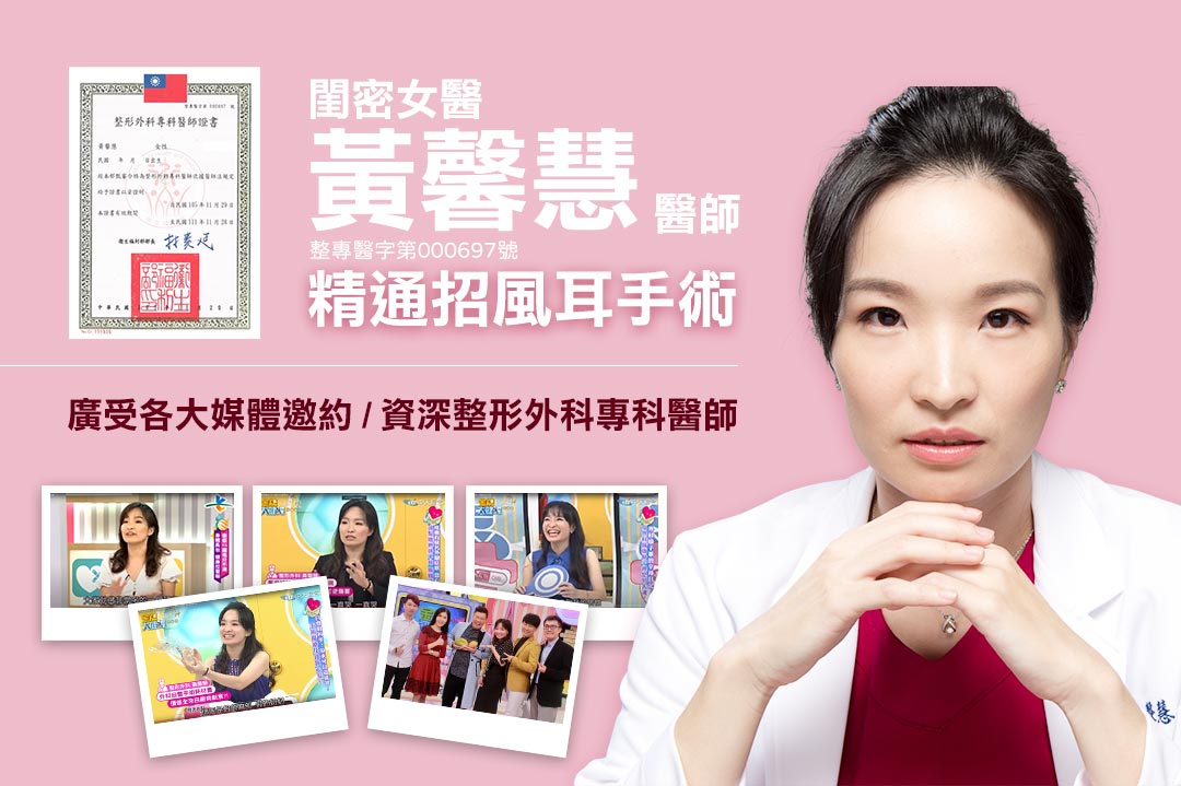 周爾康整形外科診所特別聘請「黃馨慧醫師」,身為女性整型外科專科醫師的她不僅擁有豐富的美容外科手術經驗,更有仔細溫柔的態度為每位受招風耳手術、外貌困擾的患者量身打造理想樣貌;而整形手術經驗豐富的黃馨慧醫師也經常受邀參與各大談話節目、國內醫學會、手術研討會等分享經驗,更成為許多藝人與媽咪們最親密的閨密女醫。