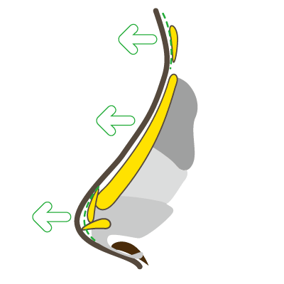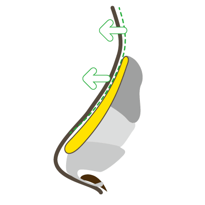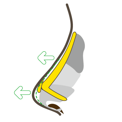 「二段式隆鼻」也被稱為是韓式隆鼻,手術中會植入I型或L型的人工鼻模,再搭配自體軟骨做為人工鼻膜和皮膚間的緩衝,可以有效避免因鼻頭太薄導致發炎甚至鼻膜穿出等不良結果,同時可以改善山根和鼻頭的不足,但對於鼻翼與鼻孔的改變程度有效。