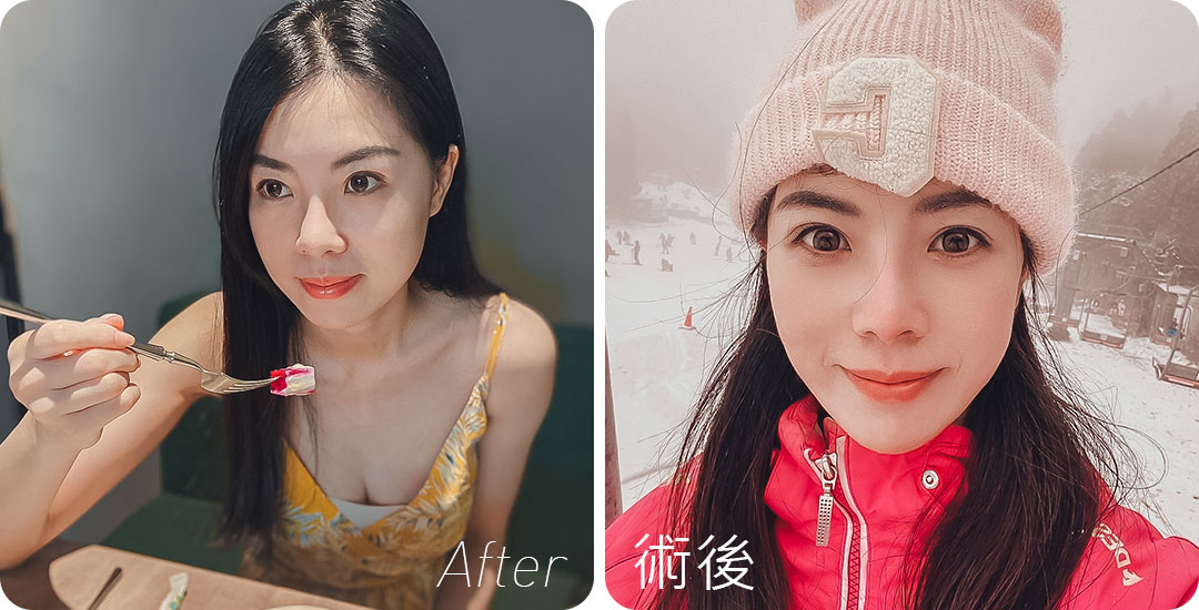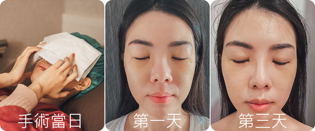 手術幾天臉上會有一些腫脹跟瘀青,我很勤勞冰敷也有乖乖吃消腫的藥,大概一周左就就不是很明顯,等到瘀青退掉後就發現眼睛下方那個討厭的眼袋也一起消失了!而且眼下就是變得很平整,原本我還擔心說解決掉眼袋後會不會反而變得有點凹但其實完全不會,反而是我的臥蠶變得明顯不少超神奇的!